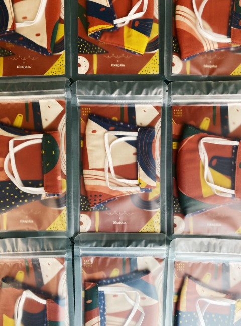 Sebelum diskusi ini berakhir, Fashion Notes masih berdialog dengan narasumber berikutnya yaitu Fika Julia yang berasal dari Jakarta, seorang desainer tekstil memiliki textile design studio dengan brand Fika Julia. Fika mendesain berbagai motif tekstil unik dan kontemporer telah mengaplikasikannya ke tekstil. Fika Julia mulai memproduksi masker dari awal pandemi di bulan Maret 2020, dimana awalnya sama dengan Harumi Davita yang menggunakan sisa kain perca yang ada di rumah. Fika dan ibunya sama – sama seorang kolektor kain dan sangat suka menyimpan kain – kain, dikarenakan banyak kain tidak terpakai maka akhirnya Fika membuat masker. Kain – kain yang dikoleksi Fika adalah 80% kain katun jepang yang bermotif cantik dan lembut jika bersentuhan dengan kulit, jadi sangat nyaman untuk dibuat menjadi masker 3 ply (lapis). Selain itu terdapat beberapa kain dari sample print (hasil contoh cetak) dengan bahan polyester dan hanya digunakan untuk lapisan depan saja. Untuk bagian dalam filter dan lapisan dalam yang menyentuh kulit wajah tetap menggunakan bahan katun berpori rapat. Fika juga berpendapat sama dengan Harumi untuk pembuatan masker kain hal paling utama wajib mempertahankan penggunaan jenis bahan, setelah itu baru desain motifnya. Masker kain dengan bahan katun 100% dan 3 lapisan mengikuti yang dianjurkan WHO, untuk motif sebaiknya bersifat unisex sehingga bisa dipakai wanita atau pria dengan dominan warna gelap dan bermotif abstrak. Menurut Fika, masker kain bisa sekali berkembang dari segi desain dan penggunaannya bahannya terutama jika didukung teknologi canggih, karena masker sudah menjadi kebutuhan utama kita sekarang ini sehingga banyak orang akan mengkoleksi masker kain untuk dipadu padankan dengan pakaian mereka.
