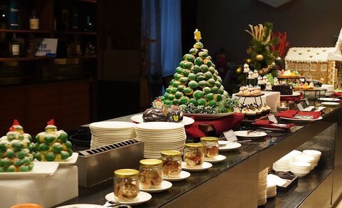 Tamu disambut dengan dekorasi Natal meriah di lobi dengan ribuan lampu kecil dan ornamen berwarna keemasan yang cantik, menjadikan setiap sudut hotel estetik dan sempurna untuk diabadikan.