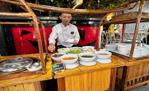 Keunikan tema Cheng-Ho juga tercermin dari konsep dekorasi restoran yang menggabungkan elemen kubah masjid dengan lampion khas Tionghoa, menciptakan suasana visual yang harmonis serta memperkuat pesan toleransi dan kebersamaan.