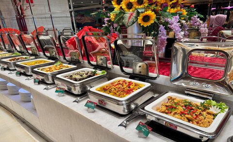 Dale Darryl Laoh, Executive Chef dan tim culinary menyajikan lebih dari lima puluh hidangan mulai dari ta’jil, salad, sup, hidangan utama, makanan penutup hingga berbagai minuman yang unik. Buka puasa diawali dengan aneka pilihan ta’jil seperti aneka kurma, aneka kolak, tauwa, pisang wijen, pakora, hiwan dan masih banyak lainnya. Beberapa hidangan unggulan yang dapat dinikmati antara lain, dimsum, Hainan chicken rice, peking duck, BBQ trisula, Mongolian lamb with szechuan pepper, laksa nyonya, BBQ Cantonese chicken, serta berbagai pilihan sushi. Tidak hanya itu, para tamu juga dapat menikmati berbagai live cooking station seperti poppiah, lamian dan shao kao yang dimasak langsung oleh Chef saat berbuka puasa. Chicken shawarma, roti canai, dan naan bread pun dihadirkan bagi para tamu yang ingin menikmati masakan khas Timur Tengah.